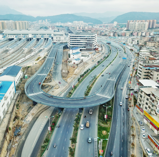 該項目屬于火車站北片區(qū)“一橫一縱一環(huán)”路網(wǎng)中的一環(huán),是火車站北站房片區(qū)的重點(diǎn)工程,也是連接羅龍路與火車站北站房旅客出發(fā)平臺的唯一通道,項目建成對完善片區(qū)功能開發(fā)需要具有重要意義。1月1日起,站前高架橋已順利通車,前往出發(fā)層的市民可從高架橋進(jìn)入北站房,而到站旅客將從廣場出站,進(jìn)出分流,交通疏導(dǎo)更加順暢。